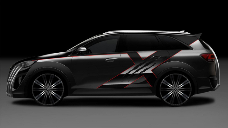 Помимо этого, автомобиль можно узнать по комбинированной окраске кузова в глянцевый и матовый черный с акцентами красного света, специальным наклейкам с эмблемами X-Men, изогнутому заднему спойлеру, уникальной решетке радиатора с буквой «X» по центру и особым колесным дискам, в дизайне которых также обыгрывается тема когтей.