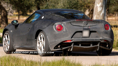 Как видно на фотографиях, серийный вариант Alfa Romeo 4C получит более крупные зеркала заднего вида, крепящиеся к дверям иначе, чем у прототипа, видимые дверные ручки прямо перед боковыми вентиляционными отверстиями, менее вычурные задние фонари, дополнительную светотехнику и даже более выразительный задний диффузор, чем у концепт-кара.