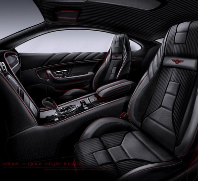 Интерьер Bentley Continental GT также ждет глубокая переработка. Обивка салона будет выполнена в черно-красной цветовой схеме с применением крокодиловой кожи, рояльного лака и алькантары.