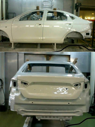 На фотографии запечатлен закамуфлированный прототип модели Lada B, испытываемый на дороге в Тольятти, а также кузов автомобиля в одном из производственных цехов «АвтоВАЗа». Сообщается, что к настоящему моменту собрано уже пять тестовых экземпляров модели.