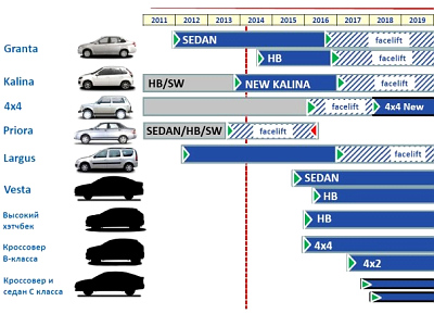Помимо этого, на 2016 года запланированы премьеры обновленных версий моделей Kalina, Granta, Largus и 4х4, а также старт производства нового кроссовера В-класса и «высокого хэтчбека».