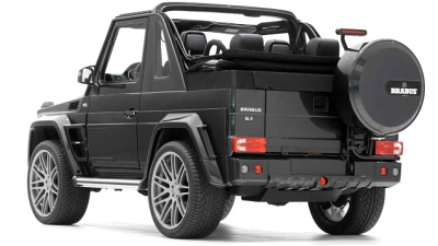 Внедорожник обзавелся новым передним бампером с противотуманными фарами и светодиодными дневными ходовыми огнями, стальными подножками, спортивным дизайном решетки радиатора, расширенными колесными арками и обновленным задним бампером с имитацией диффузора. Над ним появилось запасное колесо Brabus с выносным светодиодным повторителем стоп-сигнала. Кузов модели окрашен в черный цвет.