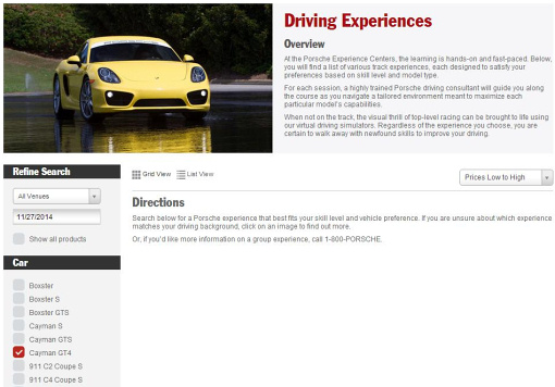 Упоминание о Porsche Cayman GT4 появилось на официальном сайте марки North American Driving Experiences, предназначенном для Северной Америки. Хотя никаких подробностей об этой модели не раскрывается, она появилась в списке существующих спорткаров Porsche.
