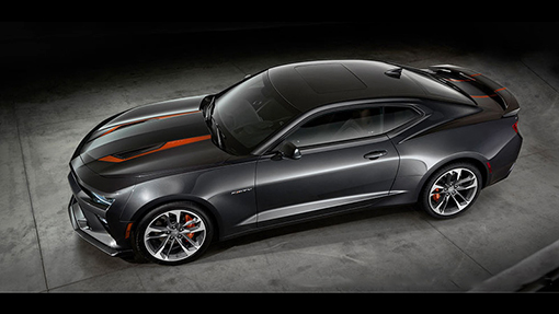 Юбилейный Chevrolet Camaro окрасили в темно-серый металлик и «обули» в 20-дюймовые легкосплавные диски. Новинку оснастили пересмотренной решеткой радиатора, тормозными суппортами оранжевого цвета и шильдиками «Fifty», расположившихся на крыле и багажнике. Автопроизводитель не стал показывать салон автомобиля, но сообщил, что внутри автомобиля расположены кожаные сиденья с замшевыми вставками и оранжевой контрастной строчкой.