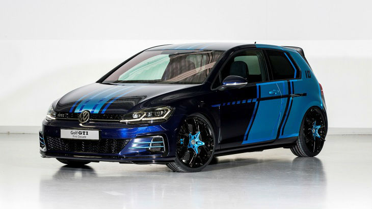 Помимо уникального технического оснащения концепт Volkswagen Golf GTI First Decade получил эксклюзивную окраску кузова, некоторые элементы обвеса от «заряженного» Golf Clubsport и набор уникальных «катков» на 20 дюймов.