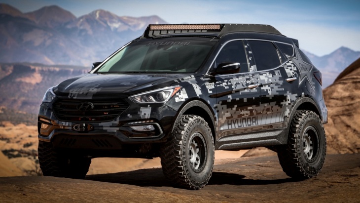 Этот модернизированный внедорожник также имеет другое название – Rockstar Hyundai Energy Moab Extreme Off-roader Santa Fe Sport Concept. Цель создания такой машины – показать реальный потенциал внедорожника Hyundai Santa Fe, после доработок, которые были выполнены специалистами компании Rockstar.