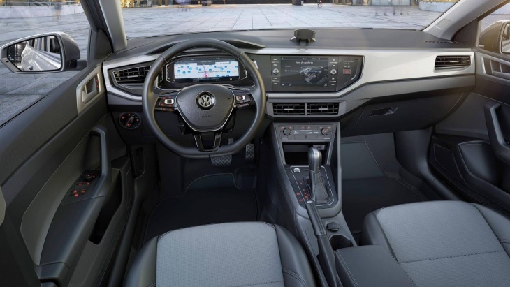По своему внутреннему убранству седан Volkswagen Virtus нового поколения практически идентичен модели Polo. В арсенале машины значится 10,25-дюймовый монитор, который заменяет приборную панель, информационно-развлекательная система с 8-дюймовым дисплеем и поддержкой MirroLink, Apple CarPlay и Android Auto.